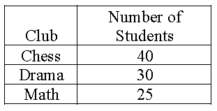The table above shows the number of students in three clubs at McAuliffe School.