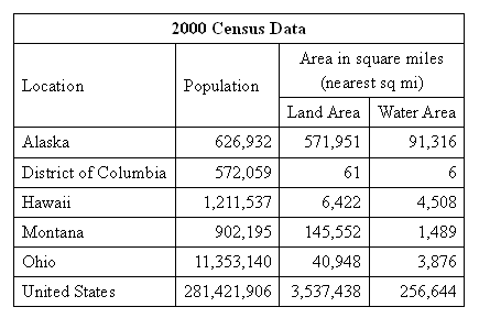 Which location has the largest percentage of water area to the total area?