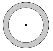 The radius of the large circle is R. The radius of the small circle is r. The areas of the shaded region and the white region are equal.