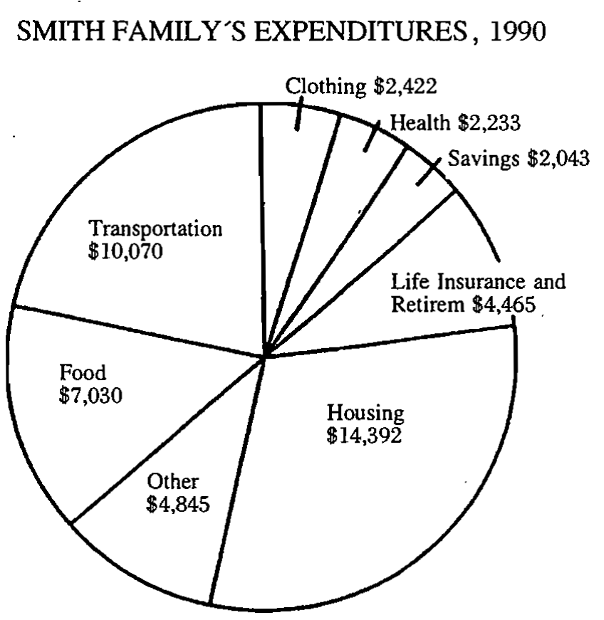 The categories of Health, Clothing, and Food together accounted for approximately what percent of the total expenditures?