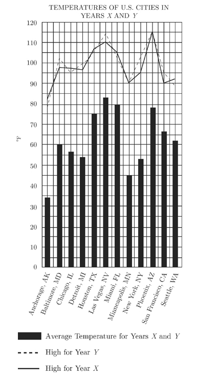 What is the approximate percent increase from the lowest average temperature for Years X and Y to the highest average temperature?